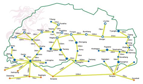 Bhutan Road Map With Distance